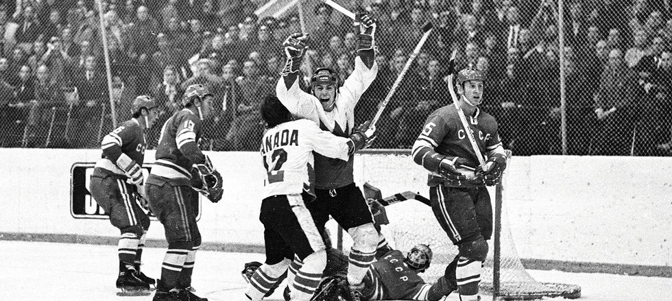 This limited edition Team Canada 1972 inspired watch by The Bradford Exchange pays homage to the 1972 Summit Series. It is accompanied by a 25th Anniversary 1972 Summit Series Card Set. The watch is individually engraved and numbered out of 4,999, and comes with a Certificate of Authenticity from The Bradford Exchange.